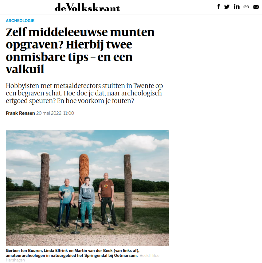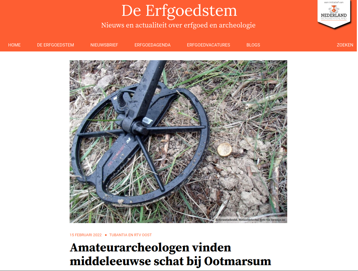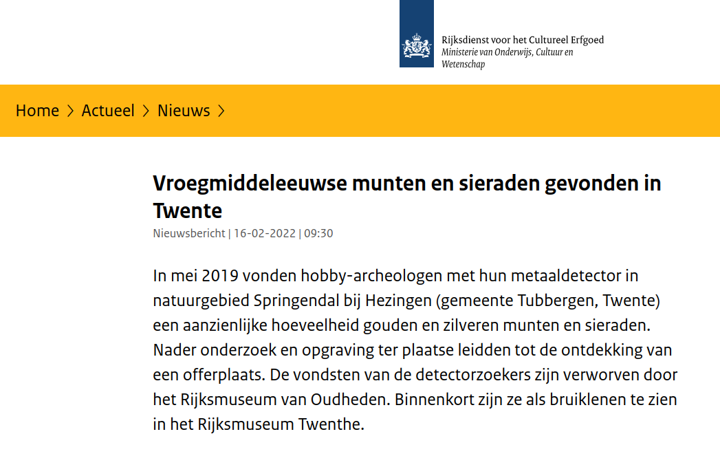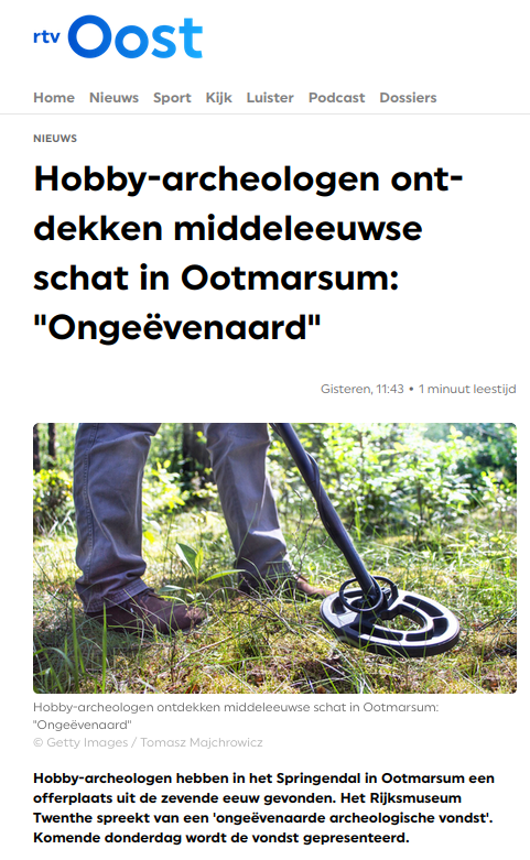 Vondsten Links naar andere sites 15 februari 2022 / Hier een overzicht met links naar andere sites met aanvullende informatie Rijksdienst voor Cultureel Erfgoed Nieuwsitem RTV Oost Nieuwsitem NOS Krantenbericht TC Tubantia In en om Ootmarsum Eenvandaag AVROTROS RTL Nieuws TC Tubantia TC Tubantia De Erfgoedstem NRC Dutch News Rijksmuseum Twenthe de Volkskrant de Volkskrant Detector magazine